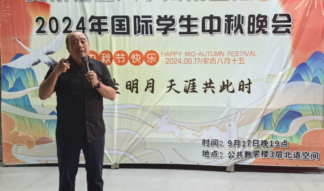 段鹏校长首先致词。段校长向北语海南国际学院的师生们致以亲切的问候;表示中秋节在中华传统文化中具有“阖家团圆”的文化内涵,在这个特别的日子里,北语海南国际学院、国际中文学院230余位师生相聚在风景宜人、海风送爽的北语海南国际学院,共度中秋佳节,相信一生都将会是一次特别的经历,一定会留下特别美好的回忆;段校长表示,海南是充满希望的热土,北语今年将有600多名国际学生来到海南国际学院学习,非常欢迎大家,在海南陵水完成学业、开创事业!段校长最后代表学校全体师生祝大家节日快乐、学业有成!
