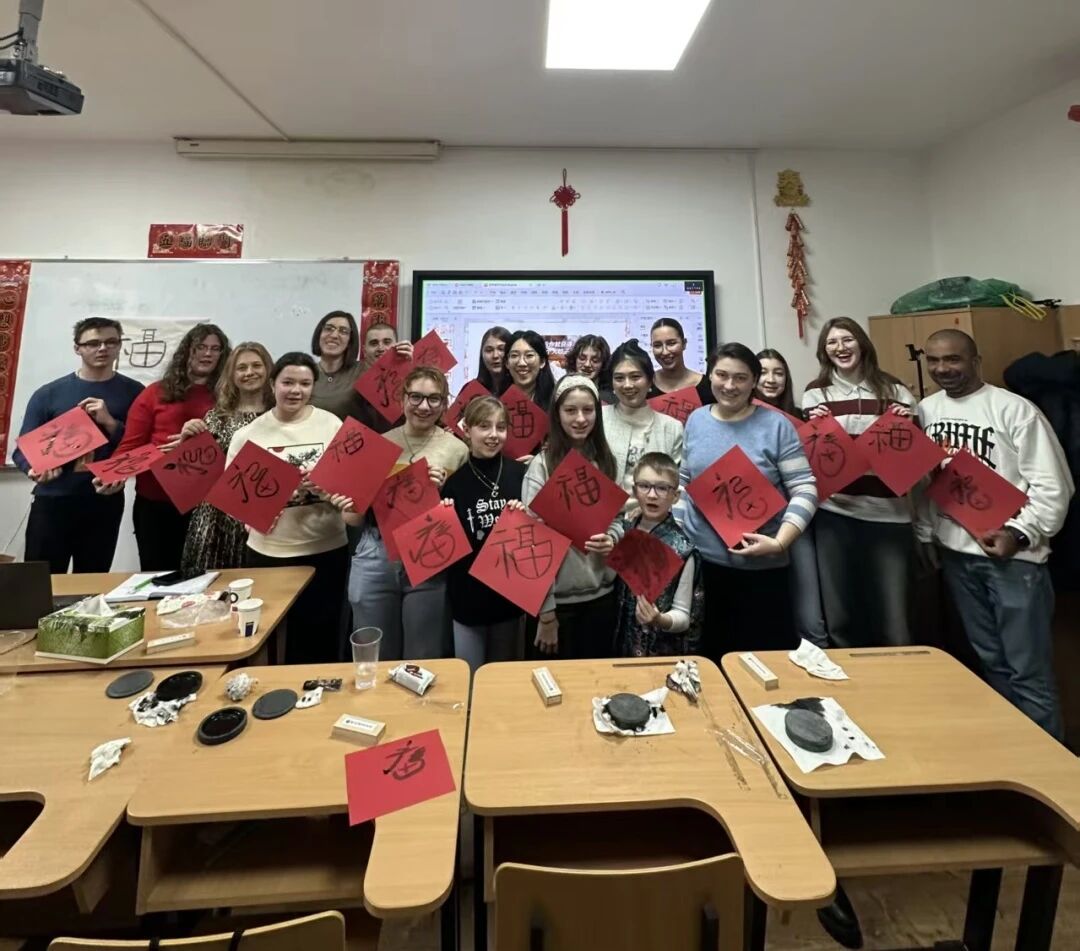 我所在的布加勒斯特大学孔子学院在罗马尼亚多个城市设有中文教学点,我有幸被分配到了巴克乌的瓦西里·亚历山德里大学教学点,担任中文选修课教师。刚踏上讲台时,学生们来到教室后用真诚的眼神望着我,我内心的忐忑和紧张远超过预期。他们都是零基础的大一学生,出于对中文和中国文化的好奇选择了我的选修课。课堂上,我第一次用“你好”引导他们开口,大家生涩而羞怯的发音,却让我听出了无限可能。