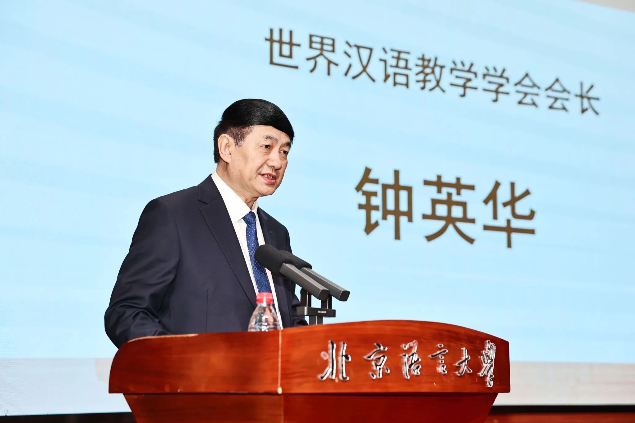 钟英华会长在致辞中深情回顾了吕必松先生作为学科拓荒者和引领者,为国际中文教育学科立根铸魂所作出的突出贡献,生动介绍了他与吕先生的特殊缘分,为大家清晰呈现了吕先生“语言报国、胸怀天下”的情怀和提携后辈、虚怀若谷的风范。钟会长希望学界能以此次研讨会为契机,将先贤精神转化为干事创业的不竭动力,深耕学术、笃行不怠,融合创新、使命不负,让国际中文教育学科焕发更加旺盛的生机。