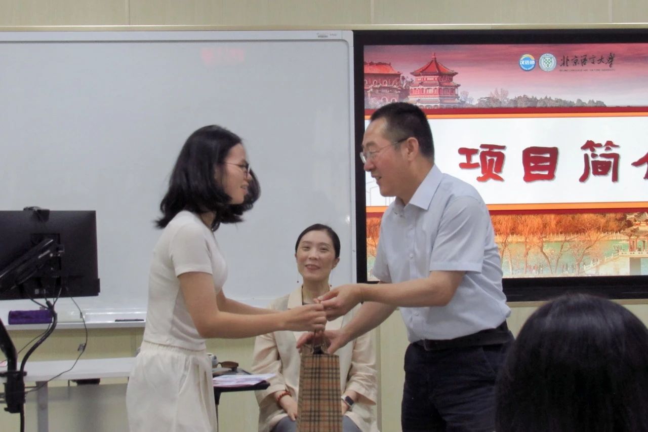 开营仪式结束后,吴明映同学代表全体营员向国际中文学院赠送了礼物,再次表达了对学院的感谢和对夏令营学习生活的期待。