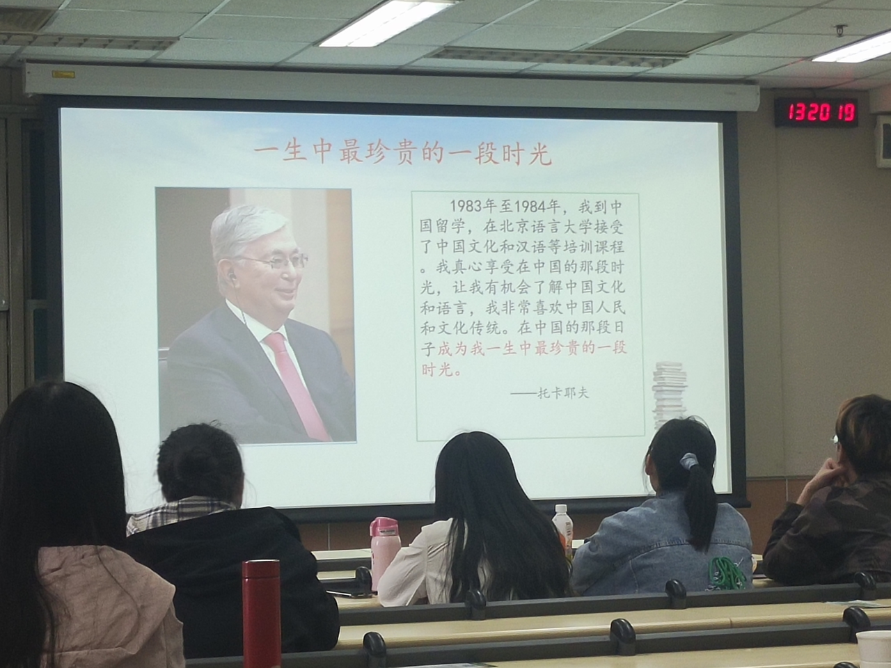 10月18日中午,在北京语言大学杰出校友、哈萨克斯坦总统托卡耶夫率团访问母校之际,国际中文学院特邀国际中文教育资深教授、托卡耶夫总统恩师刘士勤老师以“我与托卡耶夫”为题作专题讲座,讲述昔年育人故事,重温往日师生情谊。校党委教师工作部部长、教师发展中心主任展明锋,副部长张坤等出席了本次分享会,会议由学院院长沈庶英主持,学院100余名师生聆听讲座。