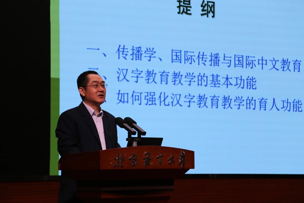 大会报告环节,梁彦民、韩玉国、张书杰、莫丹、黄梅等5位老师依次分享了自己的研究方法和研究成果。梁彦民老师以《传播学视角下汉字教学与教育的功能》为题,立足汉字的语言学职能、表意文字的根本性质和基本特点,从传播学的视角,结合对外汉语教学、汉语国际教育、国际中文教育学科的发展历程,阐释汉字教育教学以文传声,以文载道,以文化人的重要功能。