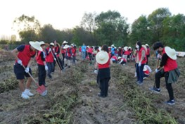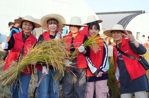 随后,留学生们来到了“国家级农耕文化实践营地——弗莱农庄”。在这里学生们纷纷戴上草帽、手套等“新装备”,开启了一场中国传统农耕文化的魅力之旅。走过弗莱农庄的文化长廊,从农业启蒙到农具发展,从观赏《耕织图》到亲手触摸北京特产之一的京西稻,留学生们感受到我国农业科技的发展状况。在当地老师们的带领下,大家开始了全新的劳动体验,用铁锹挖红薯,拿镰刀割水稻……热火朝天的干劲儿让同学们的身影在充满秋意的橙黄色的稻田中别样可爱。