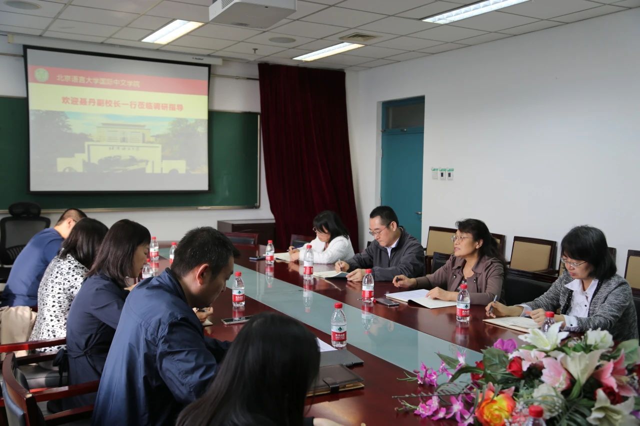 10月30日下午,聂丹副校长带队来国际中文学院调研交流,教务处处长王瑞烽、科研处副处长(主持工作)黄伟、资产管理处处长李新才、教材研究院院长郭风岚、教育技术与资源管理中心主任汤京淑等陪同调研。