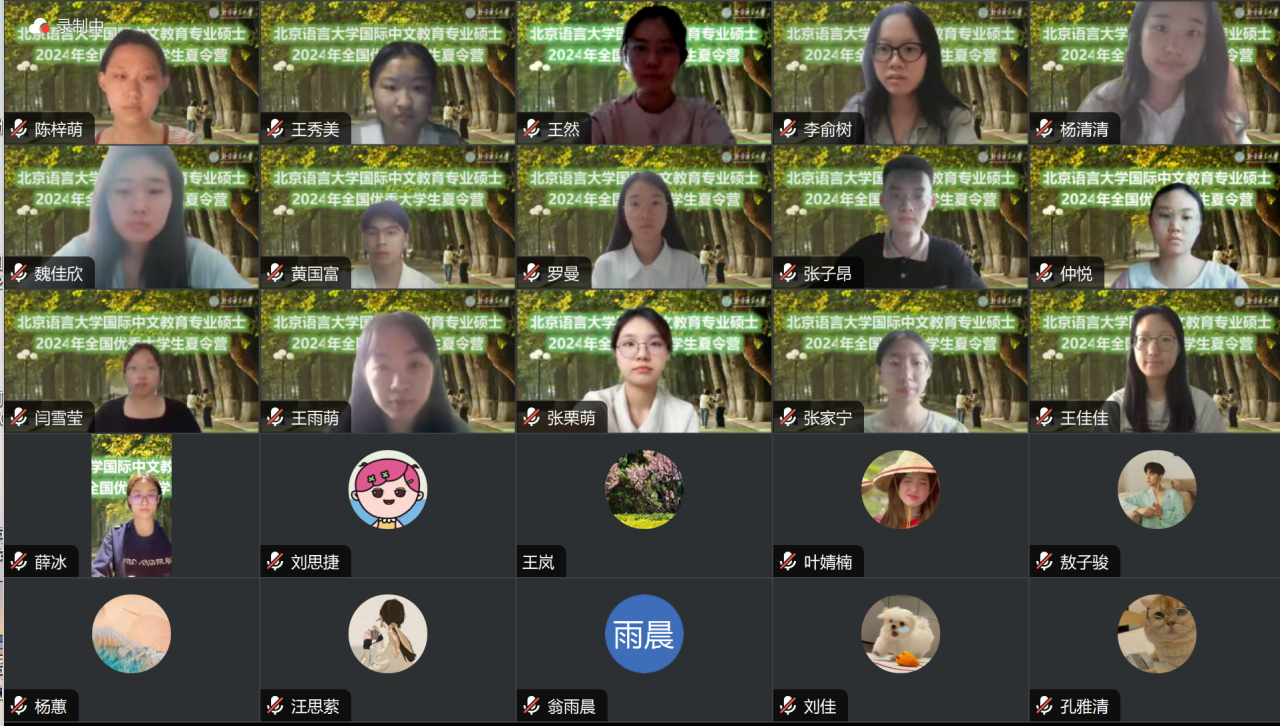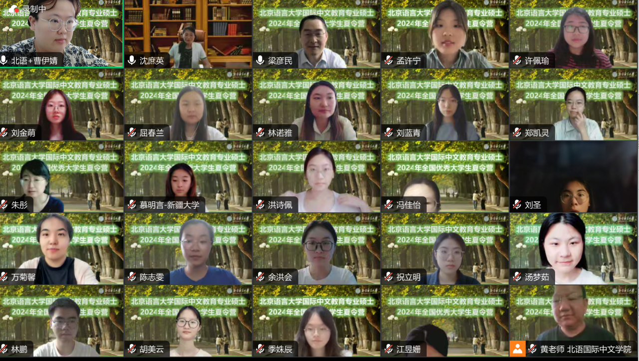 7月15日至7月16日,北京语言大学国际中文教育专业2024年全国优秀大学生夏令营在线上成功举办。本次夏令营收到了国内百余所高校108名优秀大学生报名。经过资格审查、材料审核、综合评估等环节,最终确定了来自南开大学、西安外国语大学、南京师范大学、华南师范大学等院校的96名优秀大学生参加。