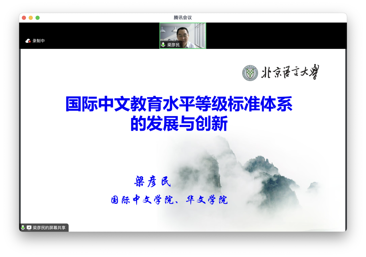 国际中文学院党委书记梁彦民以“国际中文教育标准体系的发展与创新”为题,分别从国际中文教育水平等级标准发展历史、《国际中文教育中文水平等级标准》的内容与应用、国际中文教育标准建设与学科体系的创新三个方面进行阐述。