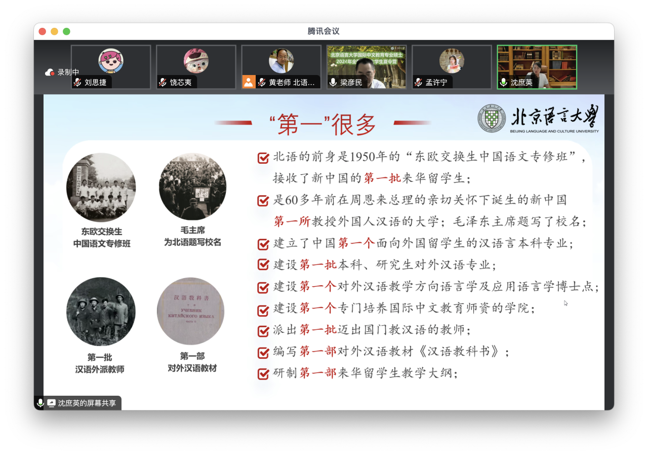 7月15日上午,北京语言大学国际中文学院院长沈庶英出席开营仪式并致欢迎辞,国际中文学院党委书记梁彦民、副院长朱彤、通识教育中心主任金海月、华文教育系主任王锐、副处级组织员高美娟出席开营仪式,仪式由梁彦民书记主持。