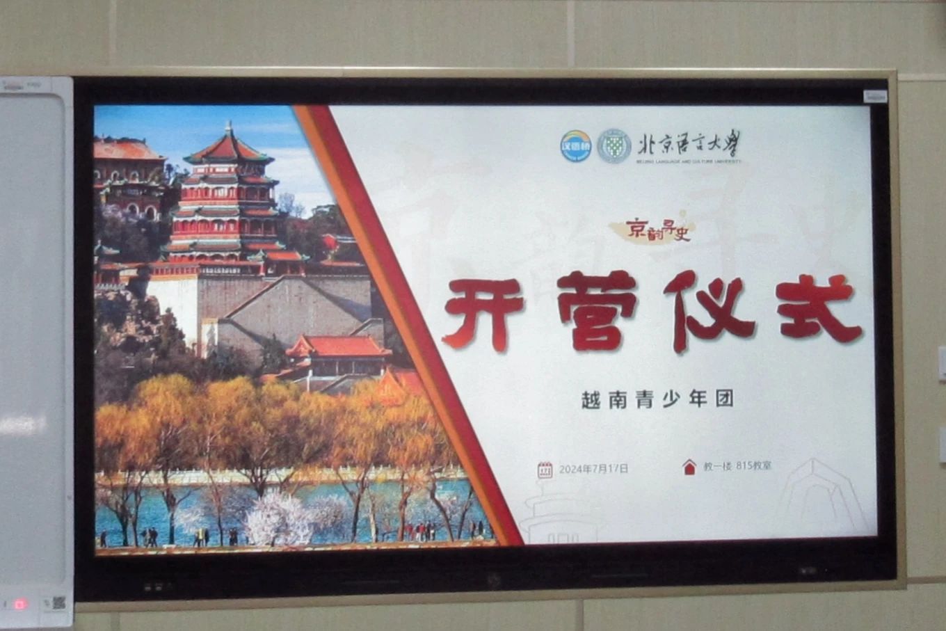 7月17日上午,一场别开生面的开营仪式在北京语言大学教一楼智慧教室隆重举行,来自越南的25名青少年正式开启了他们为期两周的“京韵寻史”之旅。本次夏令营由北京语言大学国际中文学院主办,旨在通过丰富的汉语及文化体验课程和文化探访活动,增进越南青少年对中国历史文化的了解和认知,促进中越两国青年之间的友谊与交流。国际学生处副处长崔冬妮、国际中文学党委书记梁彦民、越南青少年团领队郑青霞博士、国际中文学院副院长朱彤、任课教师代表朱世芳、郭姝慧、刘敬华及全体营员参加了开营仪式。