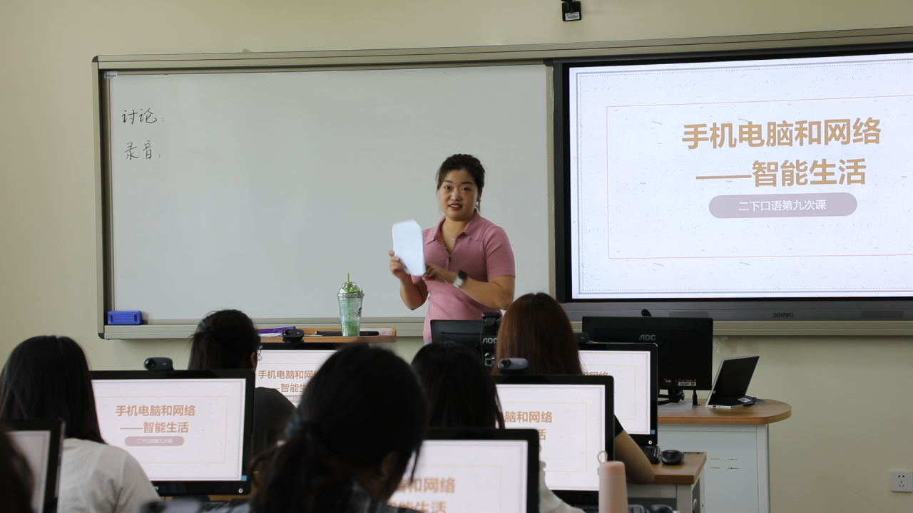本次示范课讲授的内容为中文口语4的第三单元,主题是“手机电脑和网络——智能生活”,教学对象是国际中文学院二年级下的本科留学生。