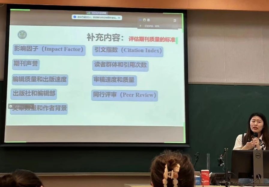 讲座伊始,王建杰从学术论文的常识入手,专业且易懂地向同学们科普了影响因子的定义、学术期刊分区、通讯作者与第一作者的区别等科研常识,让同学们对以往模糊的科研基本概念有了更加清晰地认识和了解。