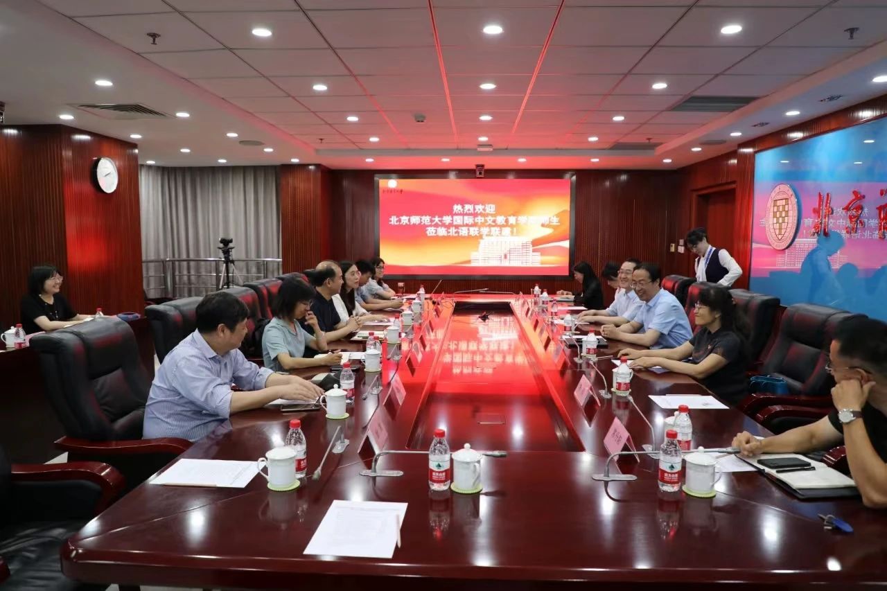 会议伊始,沈庶英院长对北京师范大学国际中文教育学院一行表示热烈欢迎,回顾了两校合作交流的成果,并介绍了国际中文学院在学科建设、师资队伍、教学科研、人才培养等方面的相关工作情况。梁彦民书记围绕党纪学习教育、党建思政、一体推进党风政风、师德师风、校风学风建设的主要做法进行了汇报。