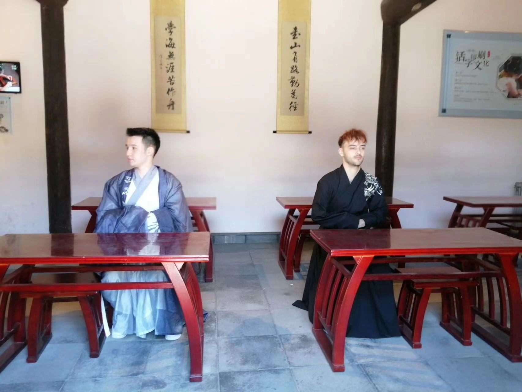 在 “永顺染坊”,留学生们看到了中国从新石器时代到现在各个时期的印染技术成就和特色展览。一条条布匹从半空垂下,夏风拂过,别有风韵,同学们纷纷被日常生活中不可或缺但又很少细想的“布匹”的朴素魅力所折服,在其间穿梭欣赏,留下了美丽的影像记忆。有的留学生还穿上了中国古代的服饰,在仿古建筑中拍照留念,体验了做一位中国古代书生的意趣。