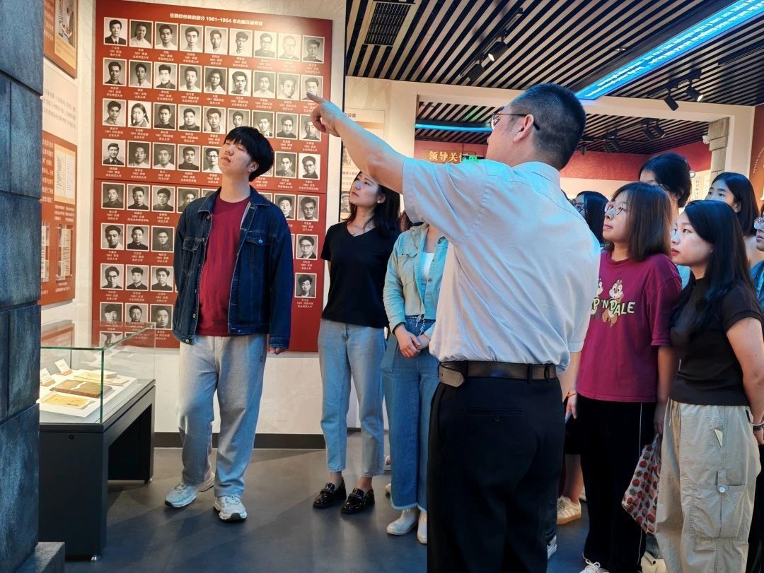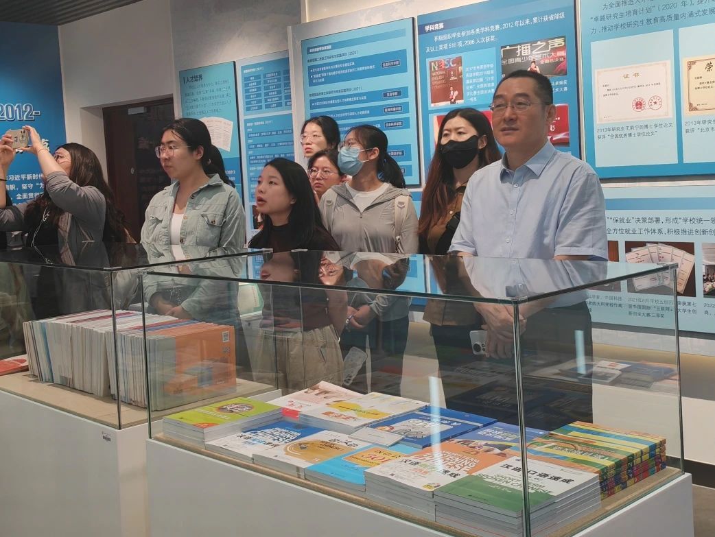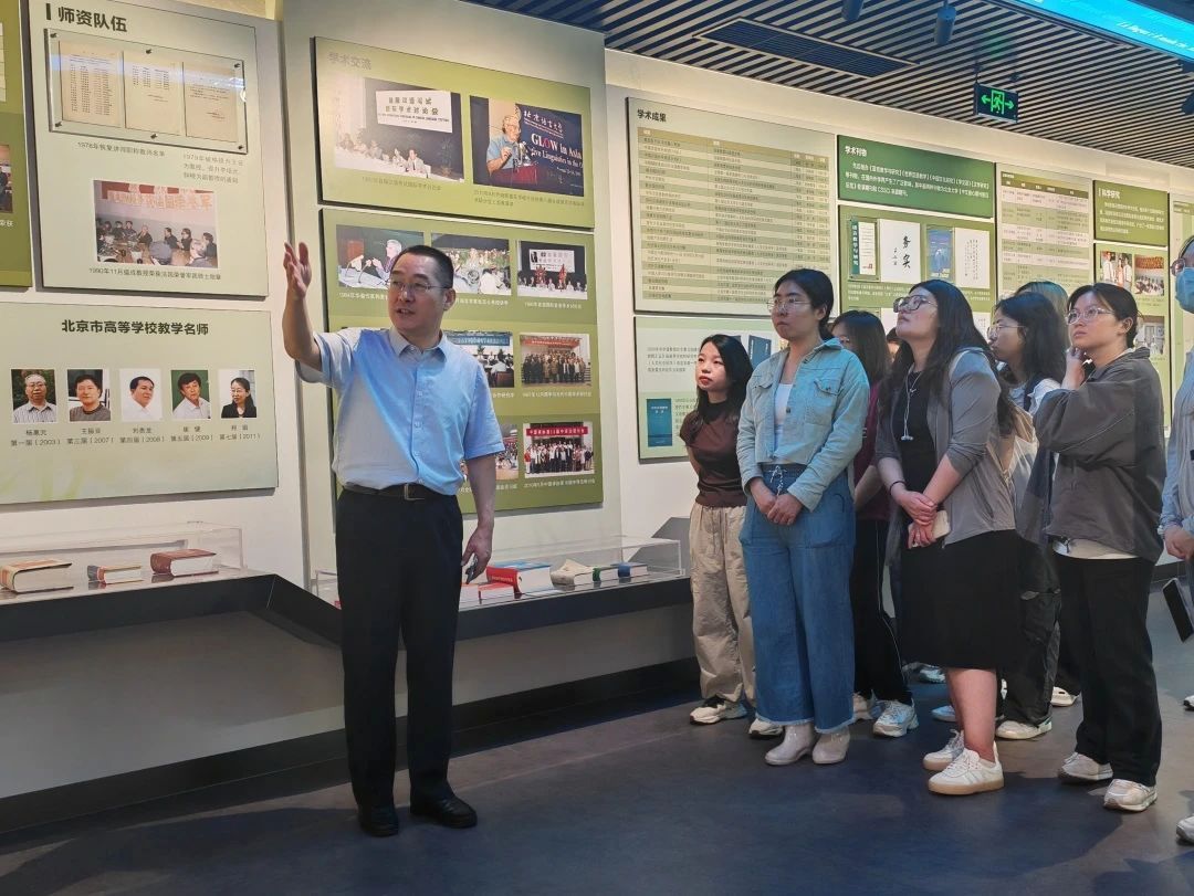 跟随着梁书记的步伐,同学们来到了校史展厅。这里陈列着大量的图文资料,它们共同见证了北语自建立以来的风风雨雨。梁书记的细致讲解让同学们深刻感受到了学校发展的艰辛与不易,在校党委的坚强领导下,从破旧的校舍到如今现代化的教学楼,从最初的简单教材到如今丰富多样的专业书籍,每一步都凝聚着北语人的汗水和智慧。