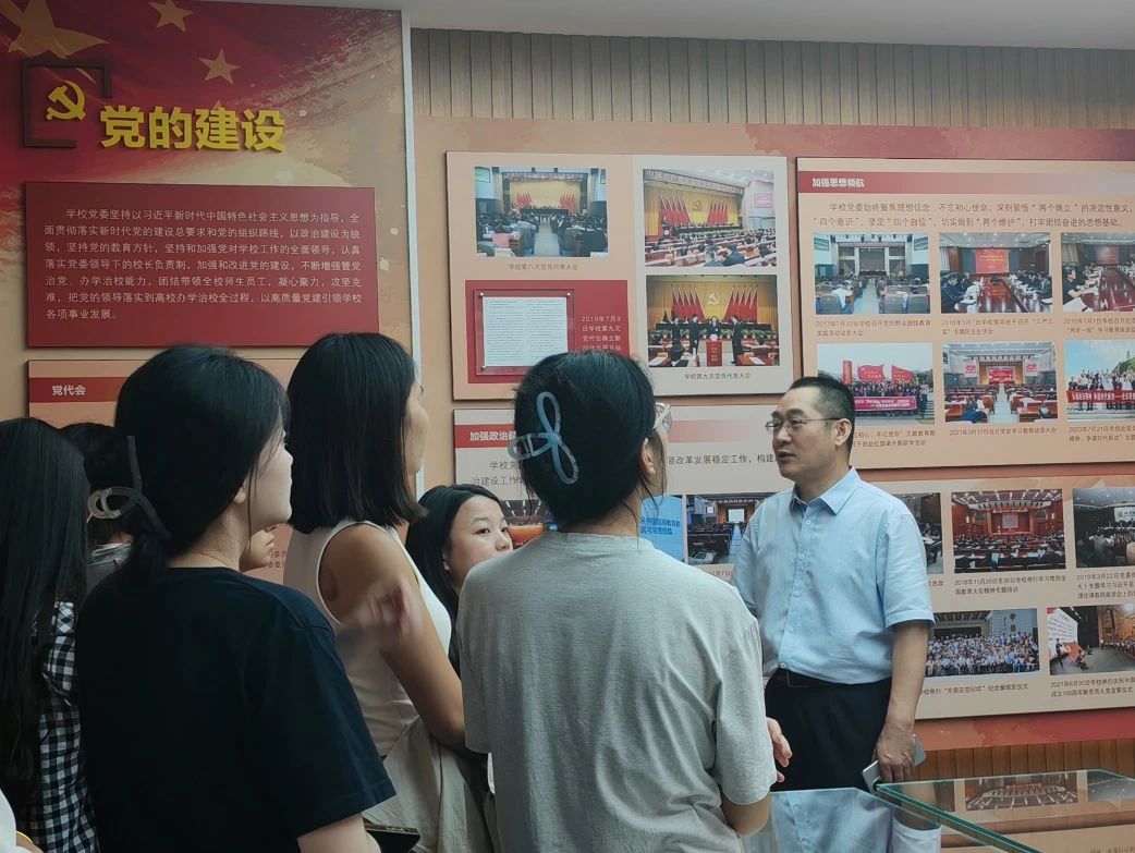 北语校史馆的党建专题展区不仅展示了学校的历史成果,更成为新北语人开展党纪教育的新平台。在这里,梁书记亲自为同学们展示了北语党建的历史脉络,从党的初创时期到如今的蓬勃发展,每一个重要节点都让同学们深刻感受到党的奋斗精神和为民初心。他语重心长地嘱咐同学们,要深刻认识党的性质和宗旨,不断加强党性修养,严守党的纪律。