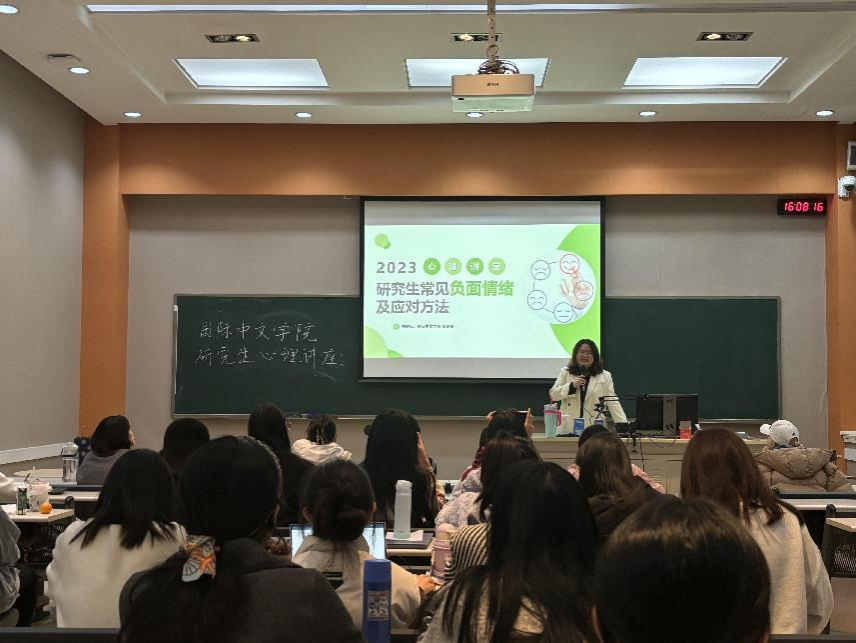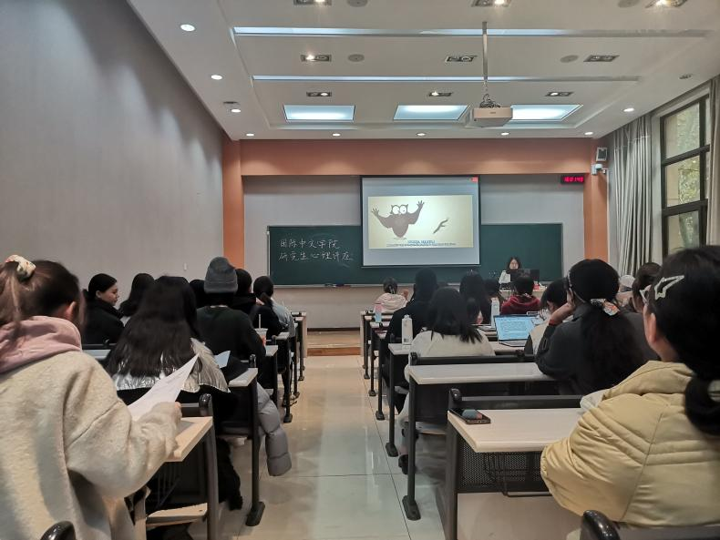 为进一步提高新生的心理适应和调控能力,培养学生健全的人格和良好的心理品质,切实提升学院心理健康教育工作实效,2023年11月21日下午,国际中文学院在主楼201教室举办研究生心理健康教育讲座。