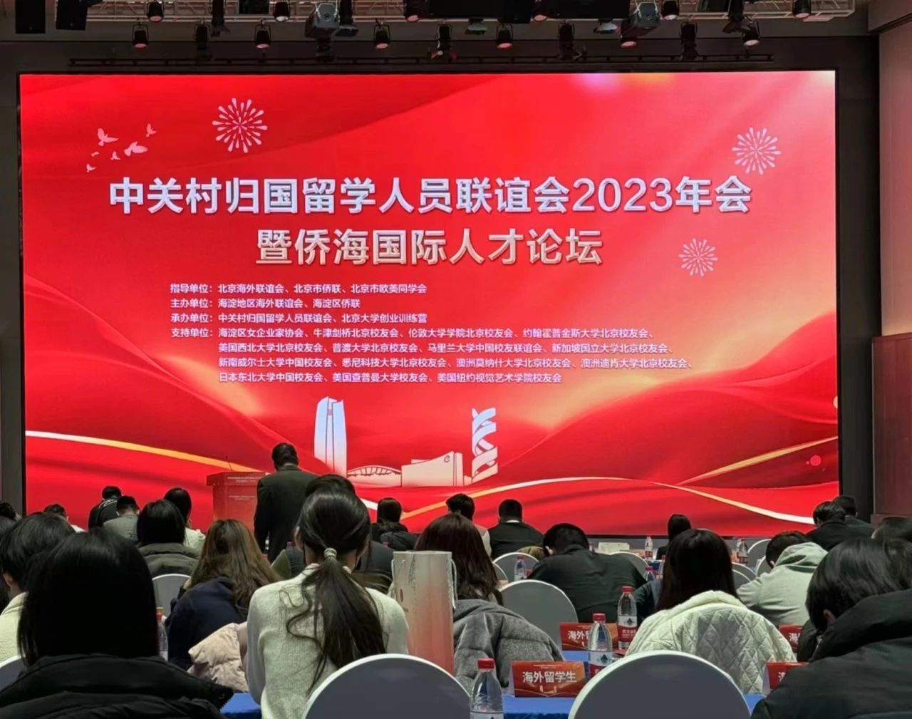 参观展厅后,同学们参加了中关村归国留学人员联谊会2023年会暨侨海国际人才论坛,现场学习来自不同领域的海归精英人才围绕科技创新、人才培养等议题的交流与讨论,感受海淀区科技创新、人才培养的氛围。中关村归国留学人员代表、侨海人才代表、知名专家学者等结合自身工作学习经历,为促进海淀高质量发展进行深入探讨。北京海外联谊会常务副会长周开让为大会致辞,鼓励归国留学人员进一步发挥好留学报国人才库、建言献策智囊团、民间外交生力军的作用,为首都高水平人才高地建设作出更大贡献。海淀区委常委、海淀地区海外联谊会会长牟晓春发表讲话,鼓励侨海人士共同凝心聚力、勇担使命,发挥大作为、展现新风采,为海淀当好首都高质量发展排头兵书写新篇章。