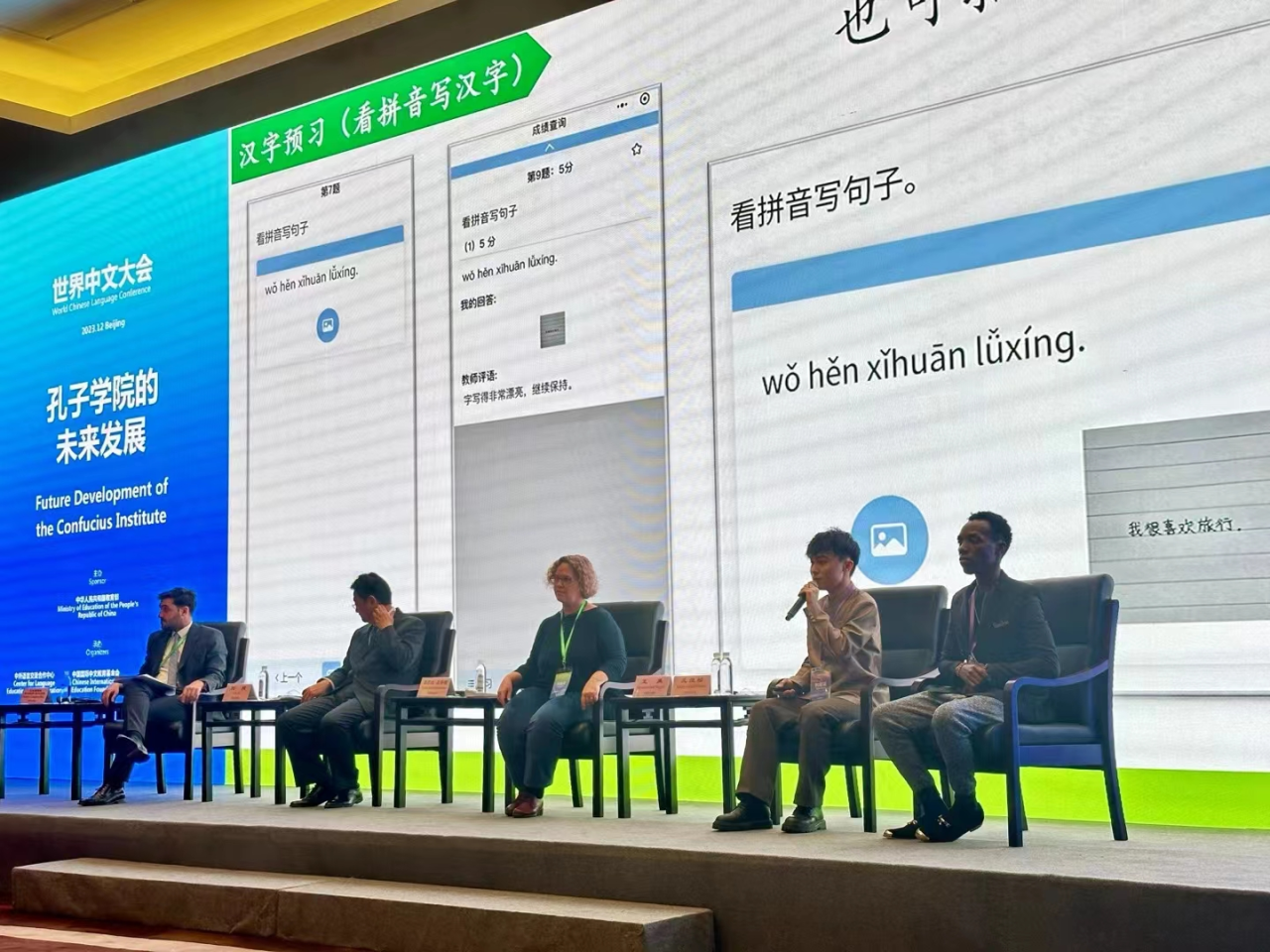 两位同学以“中文学习智能帮手——北京语言大学国际中文智慧教学系统”为题,讲述了自己在课前、课中、课后在智慧教学系统的帮助下随时、随地学习汉语的故事。两位同学的中文水平惊艳所有人,精彩的发言更是成功“圈粉”,得到与会人员的一致好评。