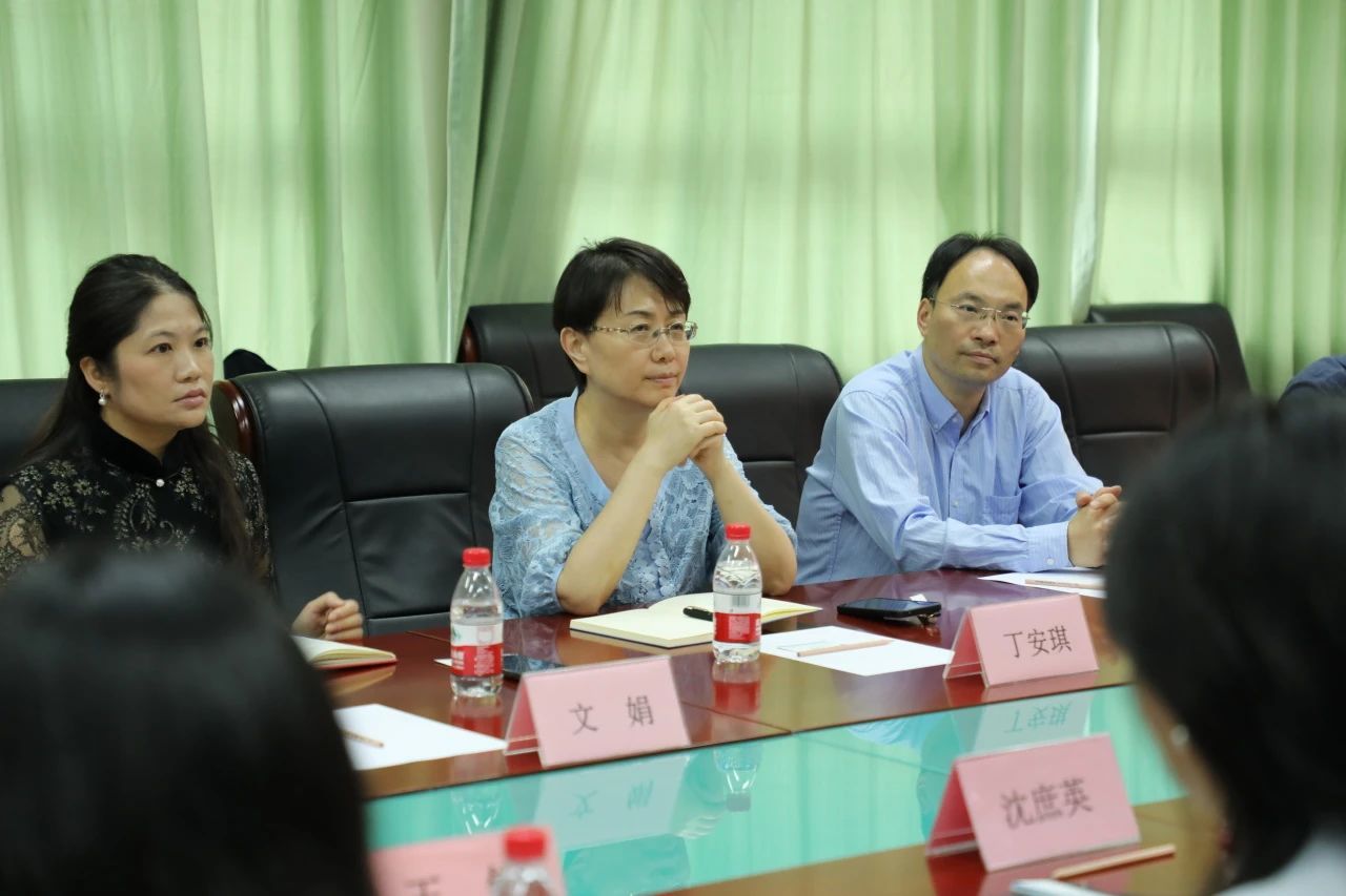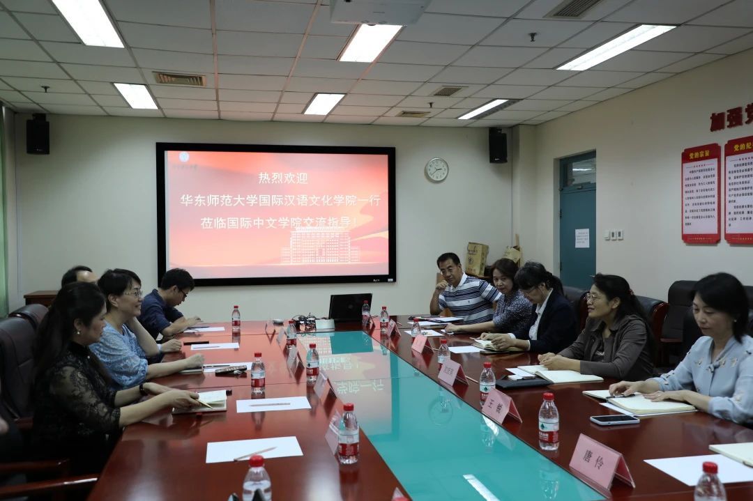 近日,华东师范大学国际汉语文化学院常务副院长丁安琪教授亲自带队,副院长文娟副教授、汉语言系主任祁峰教授、副系主任袁丹副教授、比较文学系主任金雯教授、汉语国际教育副系主任虞又铭副教授、院长助理黄锐杰老师以及综合办主任徐艾妮女士等一行八人来访我院进行调研交流。我院院长沈庶英、副院长朱彤、汉语言系主任常丹阳、汉语国际教育系主任唐伶以及教师代表王锐、金海月、闻亭等参加座谈。