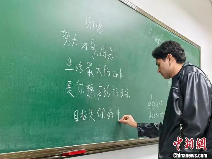 埃及学生秦终南正在黑板上写字。中新社记者曾玥摄