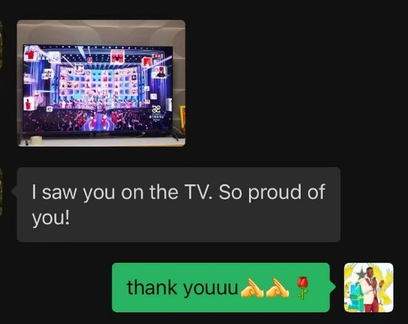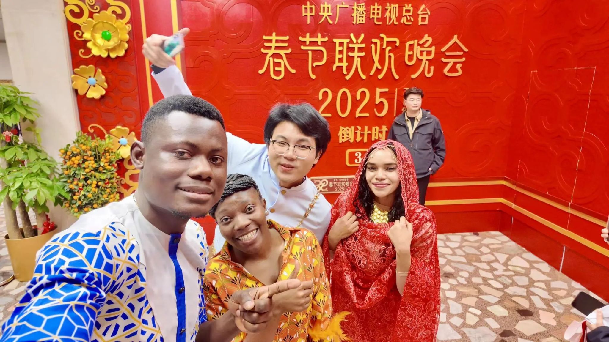 来自加纳的2023级研究生王富健表示:“能登上春晚舞台,于我的留学生涯而言,无疑是一座熠熠生辉的里程碑。与歌手李宇春、易烊千玺同台演出,这份喜悦难以言表。不仅如此,我还有幸与刘谦和王栎鑫合影留念,这更是为我的这次经历增添了珍贵的回忆。春晚开演前,我便迫不及待地告知家人与朋友,他们满怀期待地盼望着我的登场。当节目播出,我看到家人、朋友纷纷发来消息,说看到了我,甚至实习单位的主任和同事也拍照发给我,那一刻,我的内心满是激动与喜悦。加纳大学孔子学院向我索要节目照片,他们计划在公众号上发布,让在加纳的学弟学妹们看到中国春晚的舞台上,有他们的学长登台亮相。同时,我也希望这些照片和经历能够激励更多的留学生勇敢地追求自己的梦想,积极参与文化交流活动,展现我们留学生的风采。”