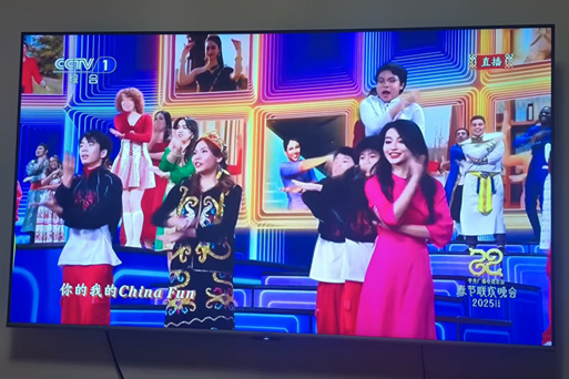 祥龙辞岁,金蛇送喜。2025年中共中央广播电视总台春节联欢晚会上,北京语言大学国际中文学院的留学生们与李宇春、易烊千玺共同演绎了歌曲《一起China Fun》。这群身着各国传统服饰、齐声送上中文新春祝福的年轻人,以融合多元文化元素的歌舞节目,让家乡亲友通过直播镜头触摸到中国年的脉动,更向海外媒体展现了民间交流直抵人心的力量。当不同文明在春晚的聚光灯下自然相拥,这群Z世代青年用真诚的笑容与创新的表达证明:跨越山海的文化对话,无需刻意编排,只需以心相交——因为每一双紧握的手、每一段共鸣的旋律,都是人类命运共同体最生动的注脚!