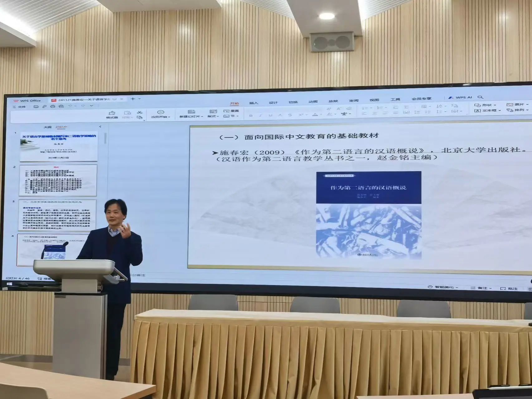 2024年11月21日,国际中文学院成功举办了“传承与创新”系列讲座的又一力作——“关于语言学基础教材编写和二语教学策略的若干思考”主题讲座。本次讲座荣幸邀请到著名学者施春宏教授作为主讲嘉宾,由国际中文学院院长沈庶英教授亲自担任主持人。此次讲座旨在深化国际中文教师对语言学教材编写的理解,拓宽其参与教材编纂的视野,并增强其将将语言学理论融入教学实际过程中的能力。校内师生踊跃参与,齐聚一堂,认真聆听施春宏教授的深邃见解,现场时不时掌声雷动,气氛热烈。