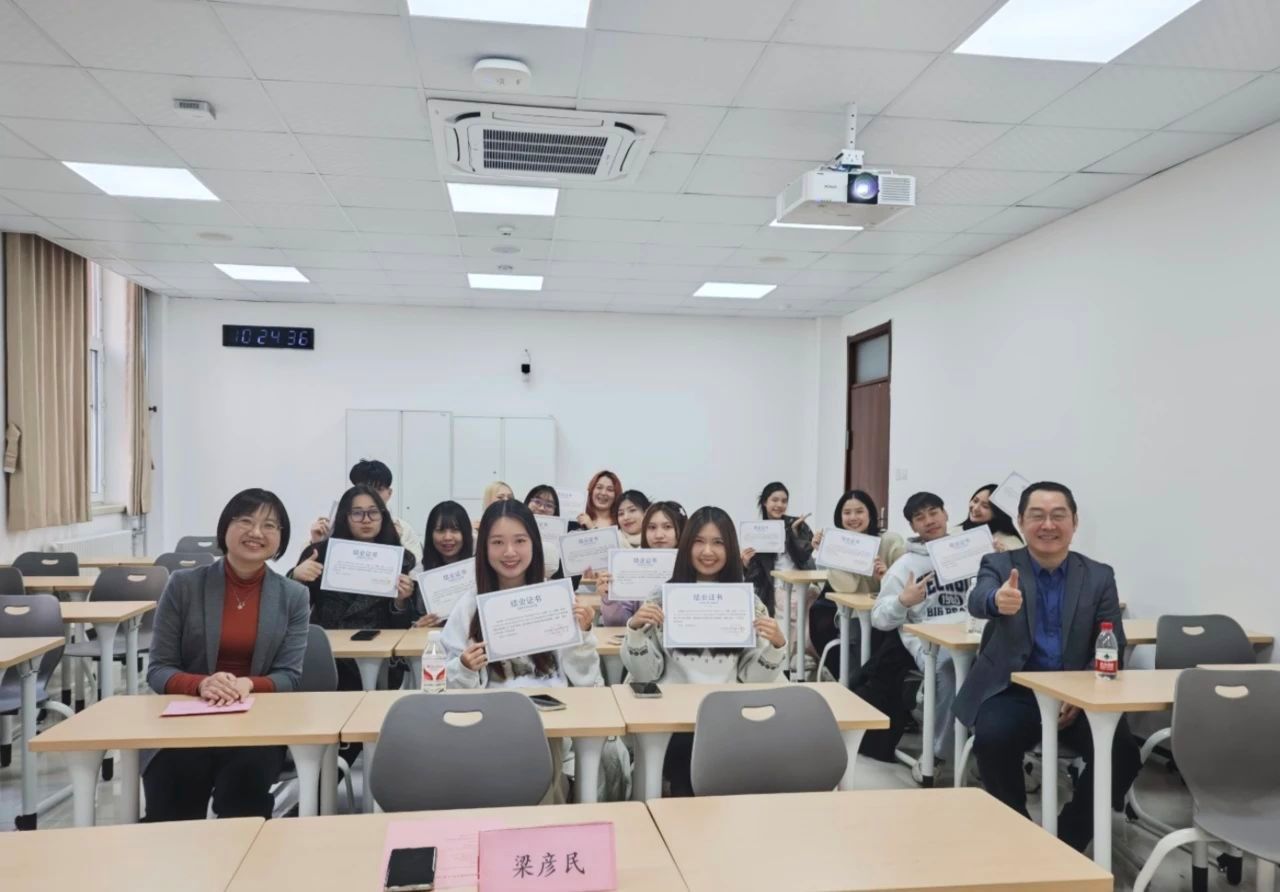 在四周的学习过程中,同学们不仅深入学习了商务案例、中国国情、中文视听等专业课程,还广泛参与了书法、中国结编织、武术等丰富多彩的中国传统文化体验活动。此外,学院还精心安排了汉字专题讲座,由国际中文学院党委书记梁彦民主讲。讲座内容深入浅出,不仅为同学们积累了丰富的汉字文化知识,更让他们深刻领略到中国语言文字的博大精深,为他们打开了一扇通往中华文化深处的大门。学习之余,同学们还参观游览了长城、颐和园、天坛等著名景点,亲身感受了中国古代建筑的智慧与魅力。