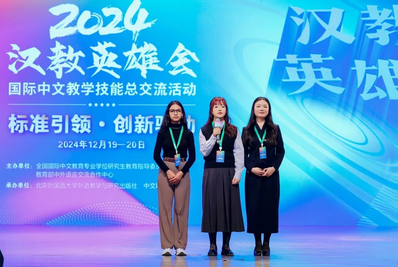 2024年12月19 - 20日,由全国国际中文教育专业学位研究生教育指导委员会、教育部中外语言交流合作中心主办,北京外国语大学外语教学与研究出版社、中文联盟共同承办的2024“汉教英雄会”国际中文教学技能总交流活动开幕式在北京外国语大学国际会议中心举行。我校学生团队在本次总交流活动中荣获全国总交流会含金量最高的“最佳教学设计团队”称号!
