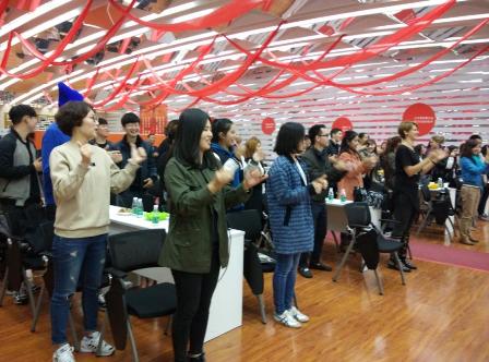 在简单的午餐之后,同学们和公司的员工进行了深入的交流。经贸系的全体学生被分成四个组,每个组选出两个同学分享了上午参观的收获和感受。最后公司的孙总经理对这次参观考察活动进行了总结发言,大家结束了充实而又愉快的参观考察。