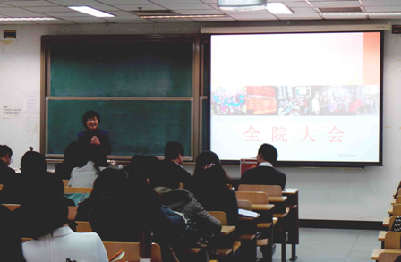 在接下来的全院大会上,曹文院长首先对上学期学院的各项工作给予了充分肯定,然后向老师们详细报告了我院今年财务经费的组成部分及变化,并对其使用作了说明。此外,曹文院长还部署了本学期学院的工作重点,强调始终要把提高教学质量作为全院的工作中心。最后,曹文院长介绍了部分人员的调动情况,对新加盟汉院的老师和完成出国教学任务归来及结束学术休假归来的老师表示热烈欢迎。