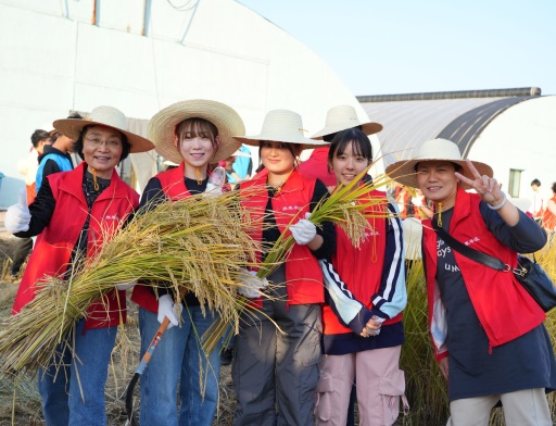 随后,留学生们来到了“国家级农耕文化实践营地—弗莱农庄”。在这里学生们纷纷戴上草帽、手套等“新装备”,开启了一场中国传统农耕文化的魅力之旅。走过弗莱农庄的文化长廊,从农业启蒙到农具发展,从观赏《耕织图》到亲手触摸北京特产之一的京西稻,留学生们感受到我国农业科技的发展状况。在当地老师们的带领下,大家开始了全新的劳动体验,用铁锹挖红薯,拿镰刀割水稻……热火朝天的干劲儿让同学们的身影在充满秋意的橙黄色的稻田中别样可爱。