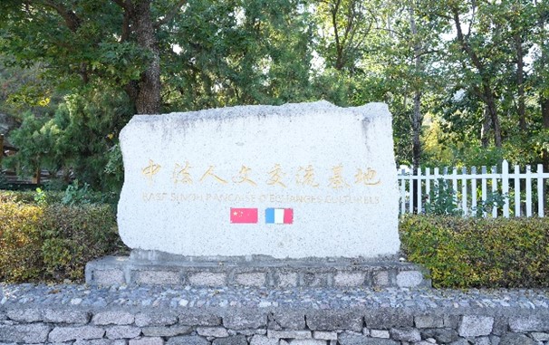 第一站是参观“中法人文交流基地—贝家花园”。贝家花园始建于1923年,其依山势而建,是法国医生贝熙业大夫在海淀西山的住所,具有中西合璧和北京西郊的地方特色。它经历了中法文明的交融,见证了中法文化的碰撞,支持着中法友谊的延续。在讲解员的带领下留学生们依次参观了贝家花园的碉楼、北大房和南大房,聆听了百年前的感人故事。