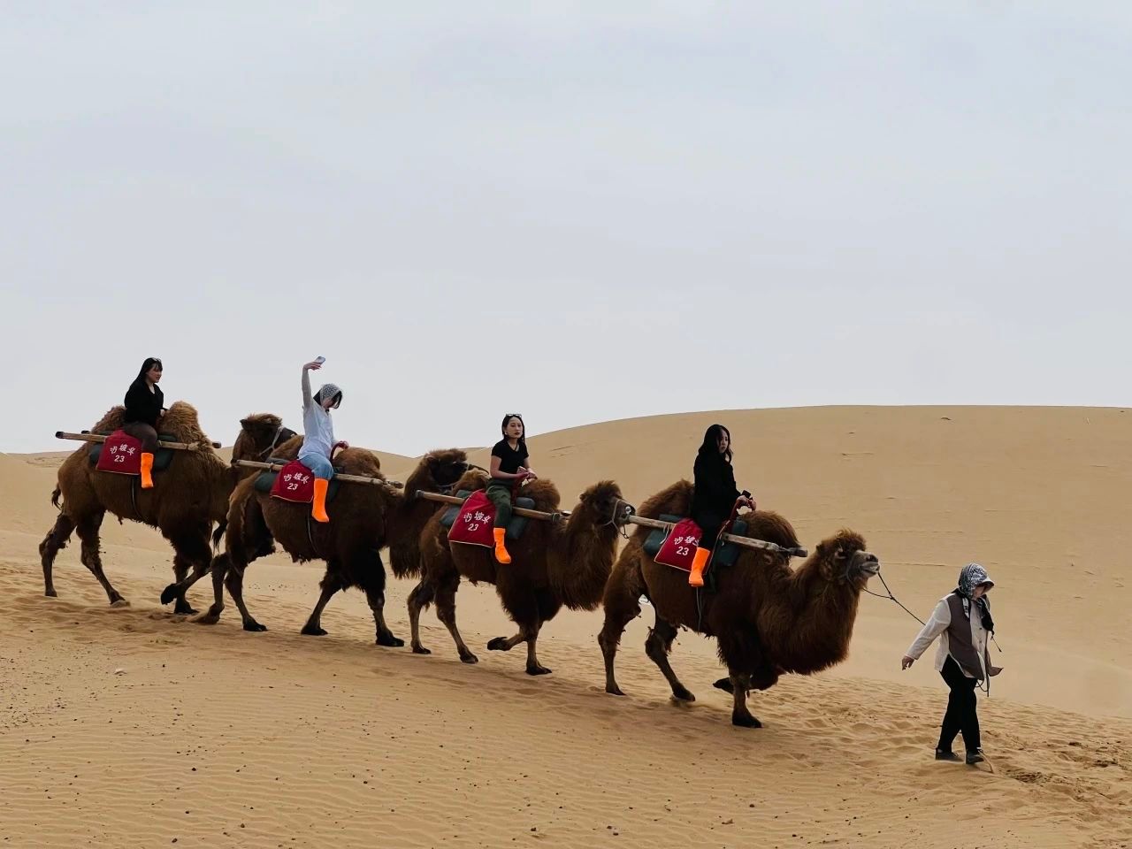 在中卫市的沙坡头,学生们领略了腾格里沙漠的浩瀚和壮观,也了解了中国的治沙工程。