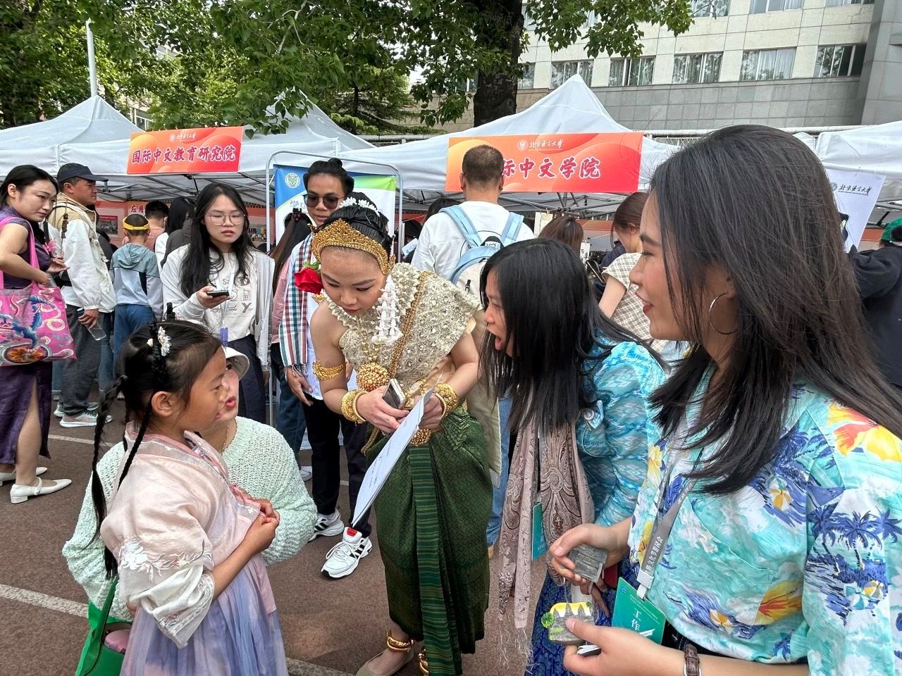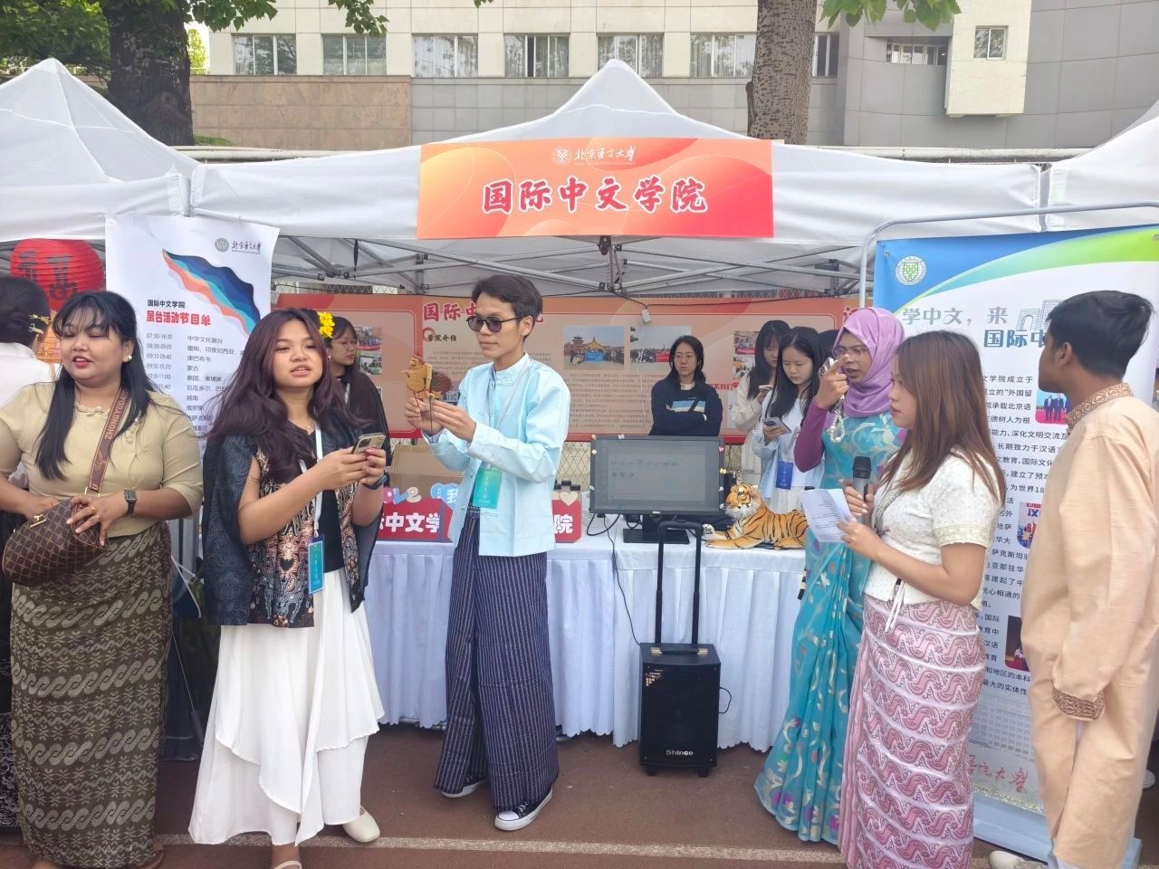 2025年4月26日,在北京语言大学国际中文学院的一方天地间,众多国家的展台如同一扇扇通往不同文化世界的神秘大门缓缓开启,一场场令人心驰神往的异域文化盛宴如约而至。现场布置充满浓郁的各国风情,从色彩斑斓的传统纹饰挂毯,到造型独特的民族特色摆件,无不诉说着这些国度的古老与神秘,吸引着世界各地来访者的目光.
