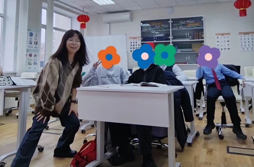 我在孔院主要负责三个中级班的教学工作。教室里坐着不同年龄的追梦人——小学生努力踮起脚尖,在黑板一笔一划听写汉字;中学生兴奋地和我分享她正在看的中文小说;一对大学生情侣每日清晨五点起床练习气功;还有西装革履的上班族,下班后匆匆赶来,笔记本上密密麻麻地标注着中俄双语笔记。