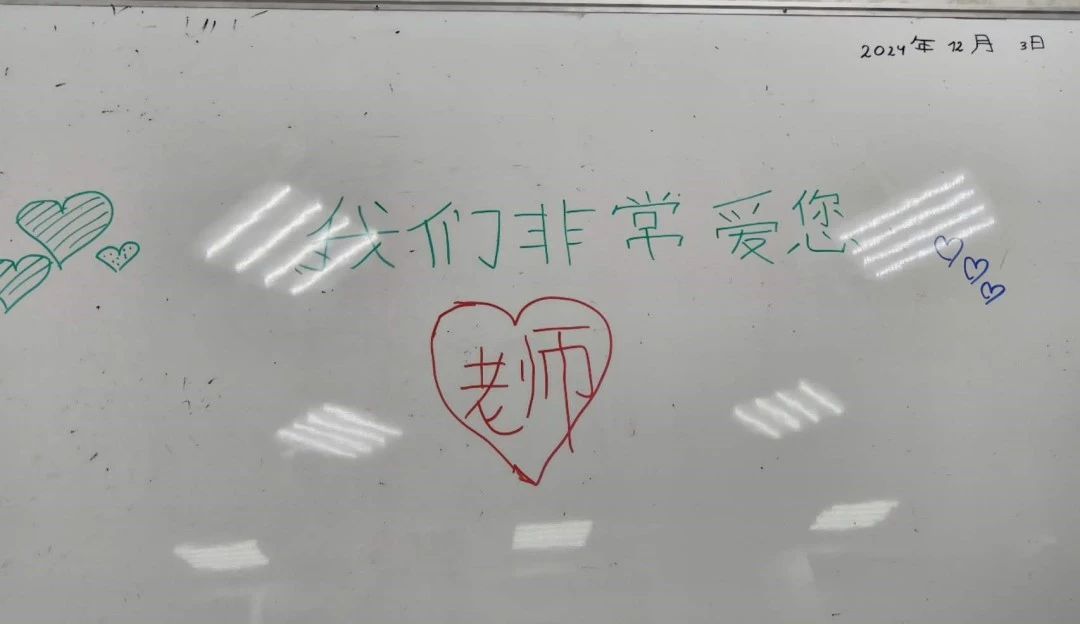 一次课间,我的中学组学生们围在白板前,用马克笔写下对我的爱。那天恰好是我的生日,他们并不知晓,这份意外的“表白”对我而言无比珍贵!
