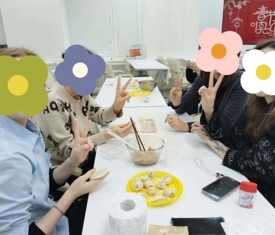 在孔子学院举办的春节暨元旦晚会上,我和同伴参加了舞龙表演。金色的龙身上下翻腾,瞬间点燃全场的热情。在与学生们的文化课互动中,我们一起用指尖揉捏面团,包出形态各异的饺子;又在宣纸拓印中触摸汉字千年的肌理;当《如愿》的旋律响起,不同的声音汇成同一旋律。饺子香气氤氲、墨香沁人心脾、歌声悠扬回荡——这场跨越国界的文化盛宴搭建起一座鲜活生动的“文化桥梁”。