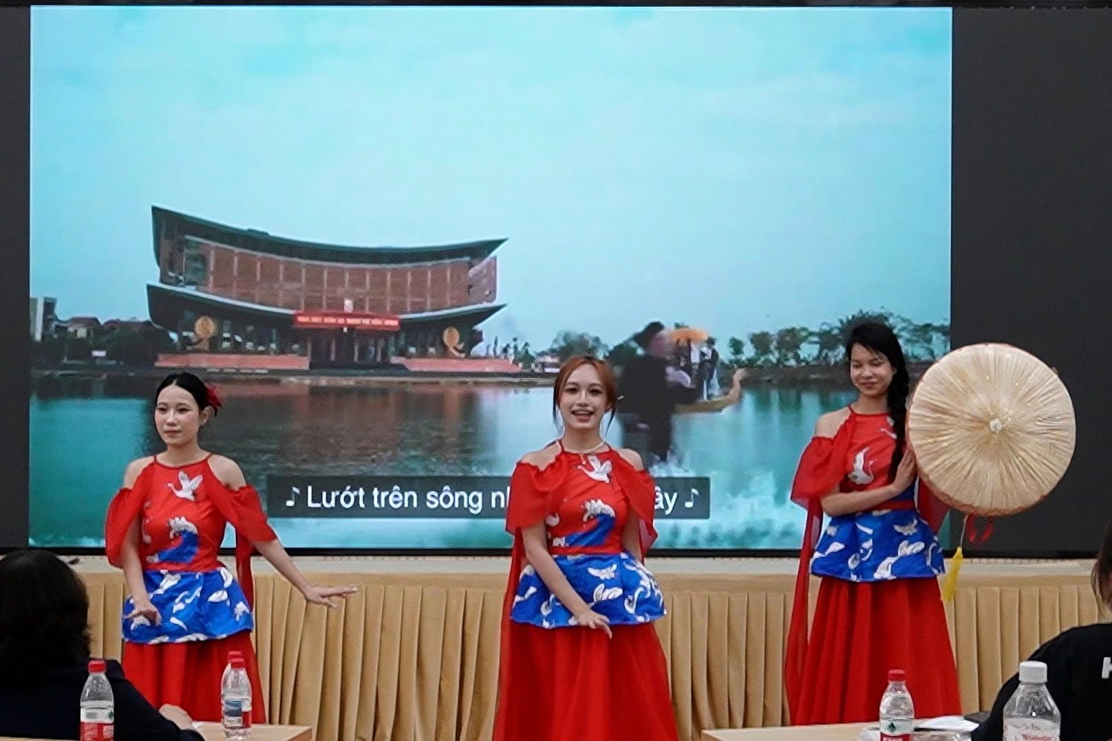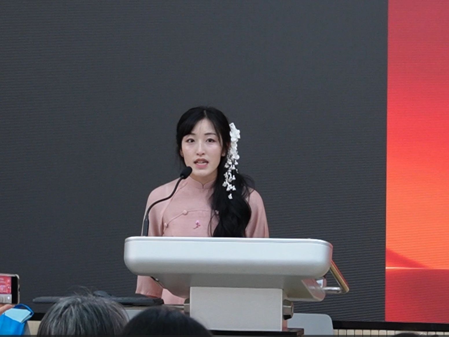 陶秋玄同学、邓兰英同学、梁氏美缘同学献上舞蹈《北宁》,以优雅的舞姿和灵动的身韵,将越南传统文化的独特魅力展现得淋漓尽致,仿佛一幅精美的画卷在观众眼前徐徐展开,让人沉醉于那浓郁的异国风情之中。