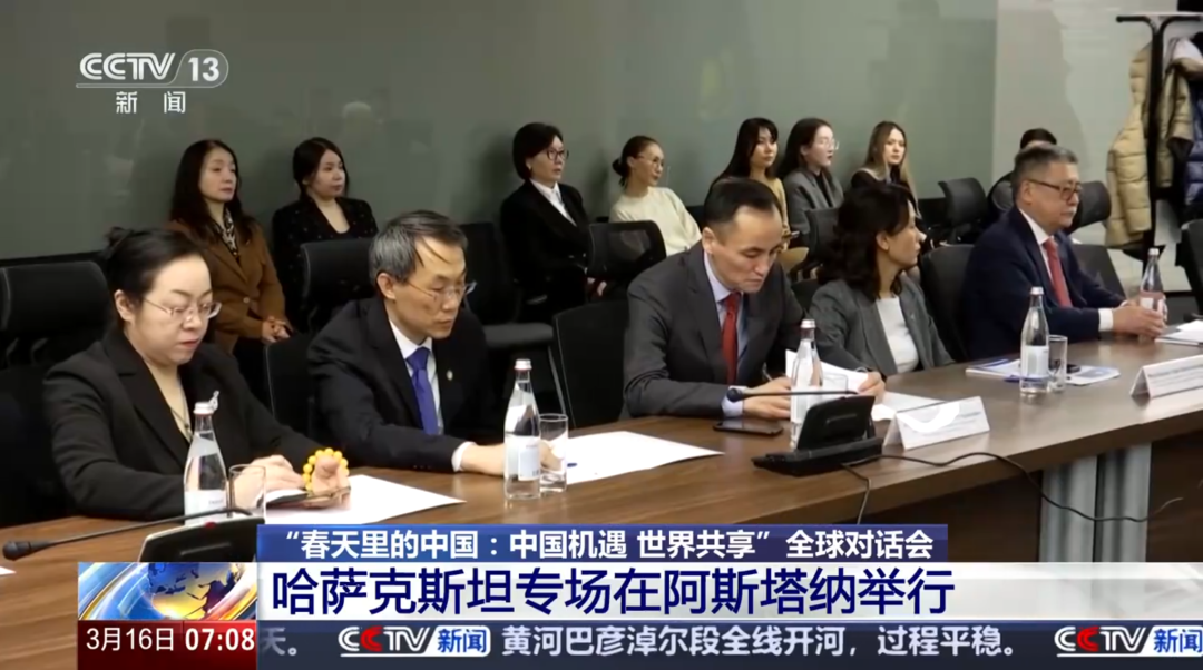 3月14日,由中国中央广播电视总台主办、中国驻哈萨克斯坦大使馆和阿斯塔纳国际大学协办的“春天里的中国:中国机遇 世界共享”全球对话会哈萨克斯坦专场在阿斯塔纳举行。阿斯塔纳国际大学校长伊尔萨利耶夫表示,去年阿斯塔纳国际大学与北京语言大学的重要合作项目——北京语言大学哈萨克斯坦分校正式揭牌。得益于与中国高校和学术机构的合作,阿斯塔纳国际大学能为学生提供更多的实习和跨文化交流机会。哈中两国在教育和学术研究领域的紧密合作,必将进一步促进哈中文化交流和民心相通。活动期间,中国中央广播电视总台亚欧总站与北京语言大学哈萨克斯坦分校、新亚欧陆海联运通道研究院哈萨克斯坦分院宣布将在人才培养、联合调研等方面进一步深化合作。