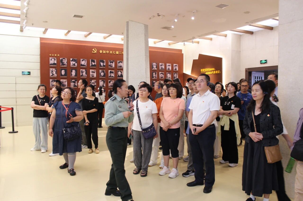 8月26日,教师党员们抵达西柏坡——解放战争时期中央工委、中共中央和解放军总部的所在地。在这片革命热土上,党中央召开全国土地会议,颁布《中国土地法大纲》,指挥三大战役,召开七届二中全会,擘画新中国宏伟蓝图。在庄严肃穆的西柏坡纪念馆广场,学院党委书记梁彦民代表学院向毛泽东、周恩来、刘少奇、朱德、任弼时五位书记铜像敬献花篮,全体教师党员肃立致敬,深切缅怀革命先辈的丰功伟绩。面对鲜红党旗,由梁彦民领誓,全体党员重温入党誓词,砥砺初心使命。在纪念馆内,大家认真听取讲解,通过珍贵的历史实物和影像资料,深刻体悟中共中央在西柏坡时期的峥嵘岁月与“两个务必”的深远意义,实地参观了五位书记旧居、中央军委作战室、七届二中全会会址等革命旧址,进一步理解了“新中国从这里走来”的历史内涵和西柏坡精神的时代价值。