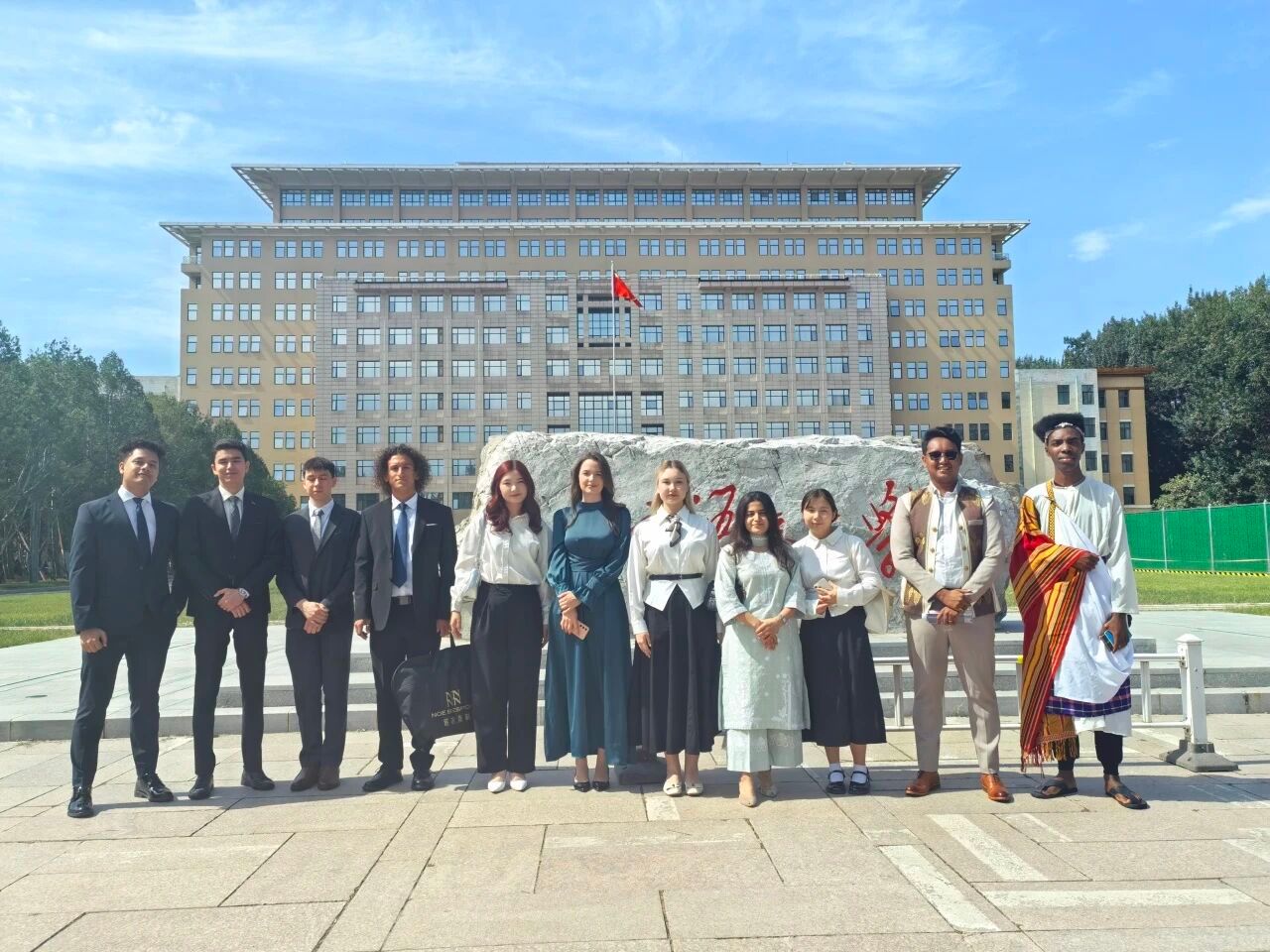 除演出环节外,国际中文学院还组织部分留学生现场观礼,近距离感受这一国际盛事的庄重氛围。由学院研究生辅导员曹伊婧带队,来自马达加斯加的李嘉、巴基斯坦的阿蒂、美国的龙金洋、俄罗斯的马腾玥、吉尔吉斯斯坦的小美、乌干达的孔维桢等留学生受邀前往,认真聆听致辞、观看仪式,深刻理解联合国教科文组织推动女童和妇女教育事业的重要意义。观礼结束后,段鹏校长亲切询问同学们的演出与观礼感受,鼓励大家以此次活动为契机,更好地了解多元文化、传递教育力量,并与同学们共同合影留念,定格下这一充满温暖与激励的瞬间。