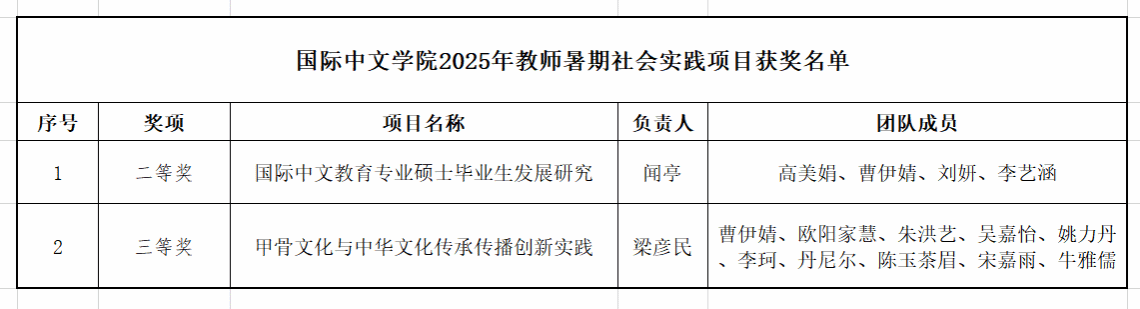 这些成果充分体现了我院在人才培养实践环节中的系统设计与持续优化,展现了教师团队扎根实践、服务国家战略、推动文化传承的使命担当。学院将以此次获奖为契机,进一步推动社会实践与教育教学深度融合,不断优化人才培养机制,为培养具有家国情怀、全球视野和专业素养的高水平国际中文教育人才奠定坚实基础。
