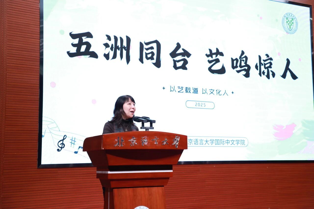 当多元文化在舞台交汇,当青春才华与文明互鉴碰撞出璀璨火花,12月11日,北京语言大学国际中文学院“五洲同台・艺鸣惊人”中外才艺大赛决赛在逸夫报告厅圆满落幕。党委宣传部常务副部长卜晨光、党委研工部副部长刘洁、校团委书记邹泺铱、国际中文学院院长施家炜及领导班子成员、教师代表莅临现场。评委由国际中文学院闻亭、骆健飞与国教处全莹三位老师担任。