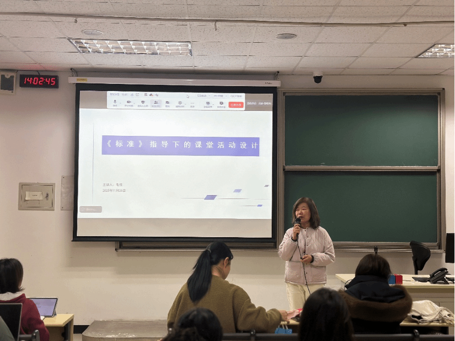 毛悦教授结合自身数十年的教学与教材编写经历,亲切地分享了她的讲座初衷:希望本次讲座能通过系统的理论框架与真实的案例剖析,使听众(尤其是青年教师)对如何落实《标准》、设计高效课堂产生切实的启发。