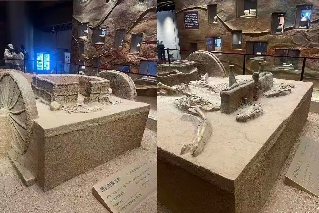序厅两侧还设有百万年人类史专题展区,一边展示有着“东方人类故乡”美誉的泥河湾遗址相关遗存,呈现早期人类的生产生活与演化历程;另一边则展出保存完好的郧县人头骨化石,为认识人类早期发展提供了珍贵实证。整个一层既营造出庄重的历史氛围,又以丰富的考古遗存,让我们直观感受到中华早期文明与人类发展的厚重与精彩。