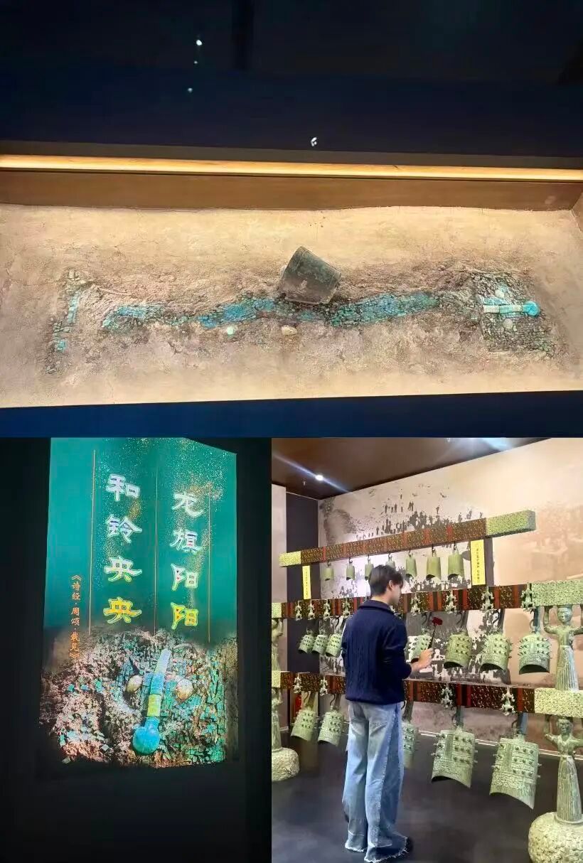 西周礼乐部分也很有意思,既呼应“问鼎中原”的历史典故,也直观呈现周代制礼作乐的制度,诠释“普天之下莫非王土”的统治秩序。现场还能体验敲编钟、摸陶片,趣味十足。