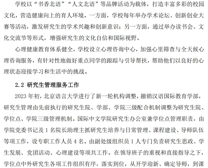 北京语言大学研究生教育发展质量年度报告
