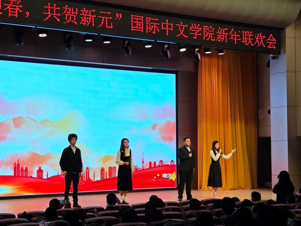 在北语的元旦节晚会上,我有幸与赵育萱、张雯趣、盖龙行三位同学共同朗诵《青春中国》。在朗诵中,我们用声音描绘出一个从苦难中崛起、在奋斗中成长的中国。今天的中国,正以蓬勃的朝气和强大的力量屹立于世界东方,让我们感到无比自豪。这不仅是一次朗诵,更是一次心灵的洗礼,让我深刻感受到“青春中国”的内涵与魅力。