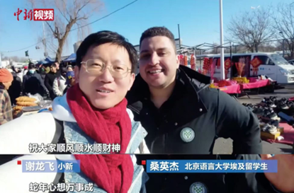 2025年春节前夕,我受中新社邀请来到北京昌平区的沙河大集,沉浸式体验中国年俗。这是我第一次留在中国过年,也是第一次赶大集。在大集上,我遇到了热情介绍中国“年”文化的春节装饰摊铺老板,也遇到了热心请我吃牛肉串的老板,感受到了中国人的热情、善良、好客。2025年是中国的蛇年,“蛇”在埃及寓意着平安、权利、智慧,我也希望通过“蛇”这个生肖文化符号,把更多有趣的中国文化介绍到埃及。