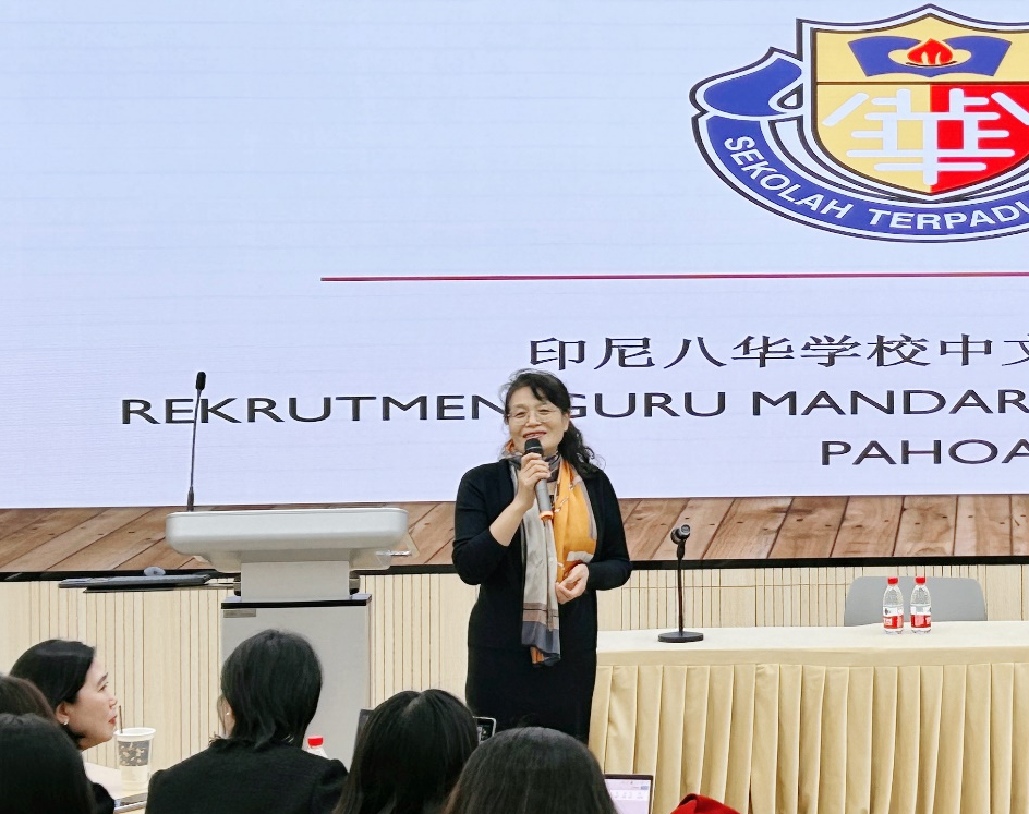 八华学校创始于1901年,位于印尼印尼丹格朗(Tanggerang)市,是当地具有重要影响力的学校。学校设有幼儿园、小学、初中和高中,目前在校生达4000余人。八华学校采用印尼语、中文、英文三语教学,重视学生中华传统文化与儒家思想的教育,长期致力于传播中华文化和教授中文,为增进中印尼之间的文化交流与教育合作发挥着重要的作用。此次到访我校进行招聘宣讲,旨在吸收更多优秀的中文教育人才,充实学校的师资力量。